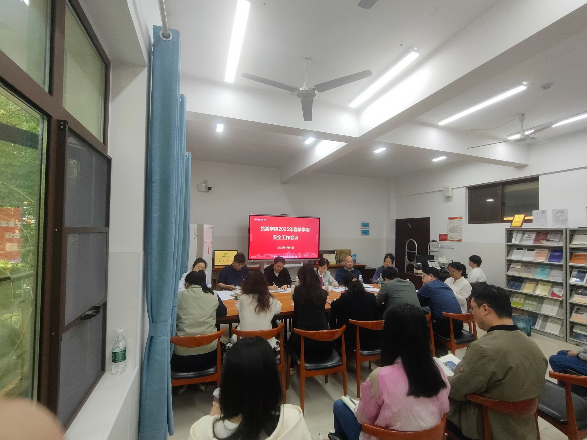 4月14日下午,公司召开春季学期安全工作会议,在家院领导出席,各系和各科室负责人参加会议,会议由公司党建组织员闵素芬主持。