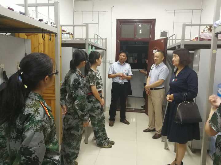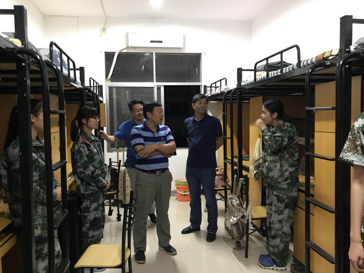 典礼结束后,王兆峰、李正益等一行走访寝室,询问新生宿舍、军训生活等情况,关心慰问全体新生。