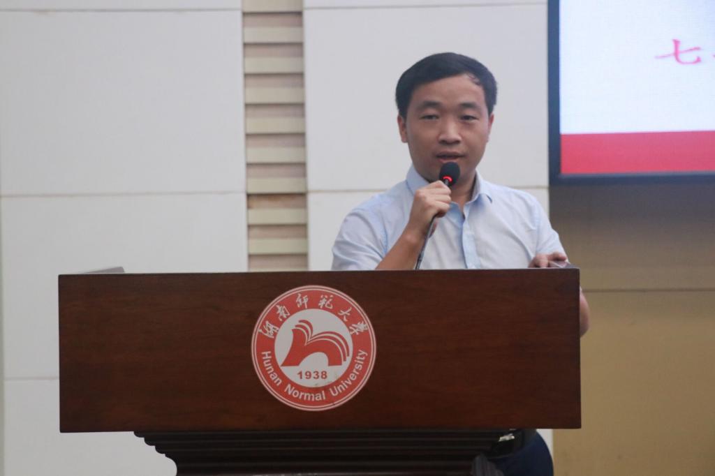 唐健雄作为教师代表发表讲话,他希望同学们在大学期间自主学习,勇于创新,培养对学习、对专业的学习兴趣和能力,同时提高自身文化素养,全面发展。