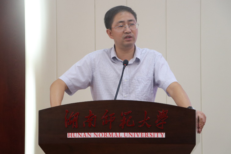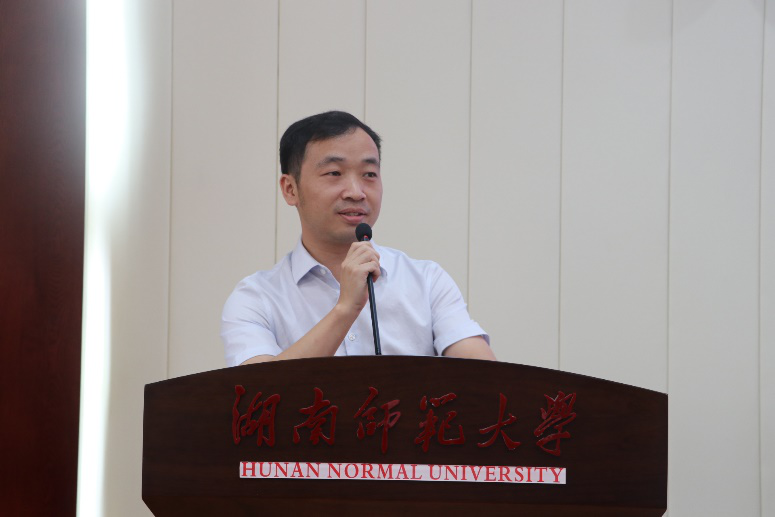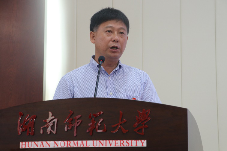 郑群明作为教师代表以“用激情,快乐地拥抱诗与远方”为主题,向同学们提出了三点希冀。他希望新生们要不忘初心,坚持学习;坚定信念,学好专业;立志高远,树立理想。