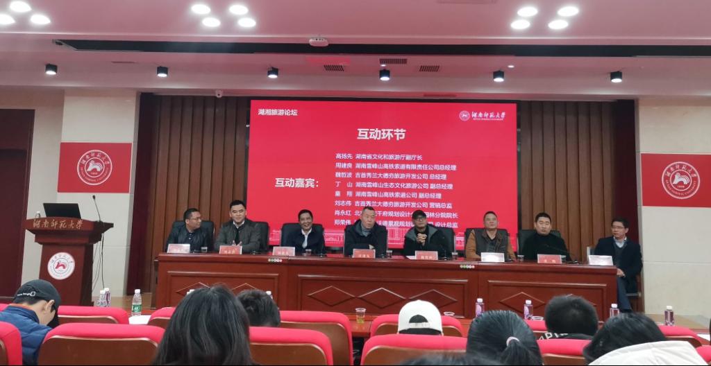 (通讯员 黄美艳 陈益)2019年12月1日下午,公司举办的“湖湘旅游论坛·文旅产业前沿”学术讲座在中和讲堂举行。湖南省文化和旅游厅高扬先副厅长出席活动,湖南雪峰山高铁索道公司总经理周建良先生作主题报告。公司经理王兆峰教授、副经理贺小荣教授、旅游研究所所长徐飞雄教授等参加了论坛。论坛由旅游管理系郑群明教授主持。