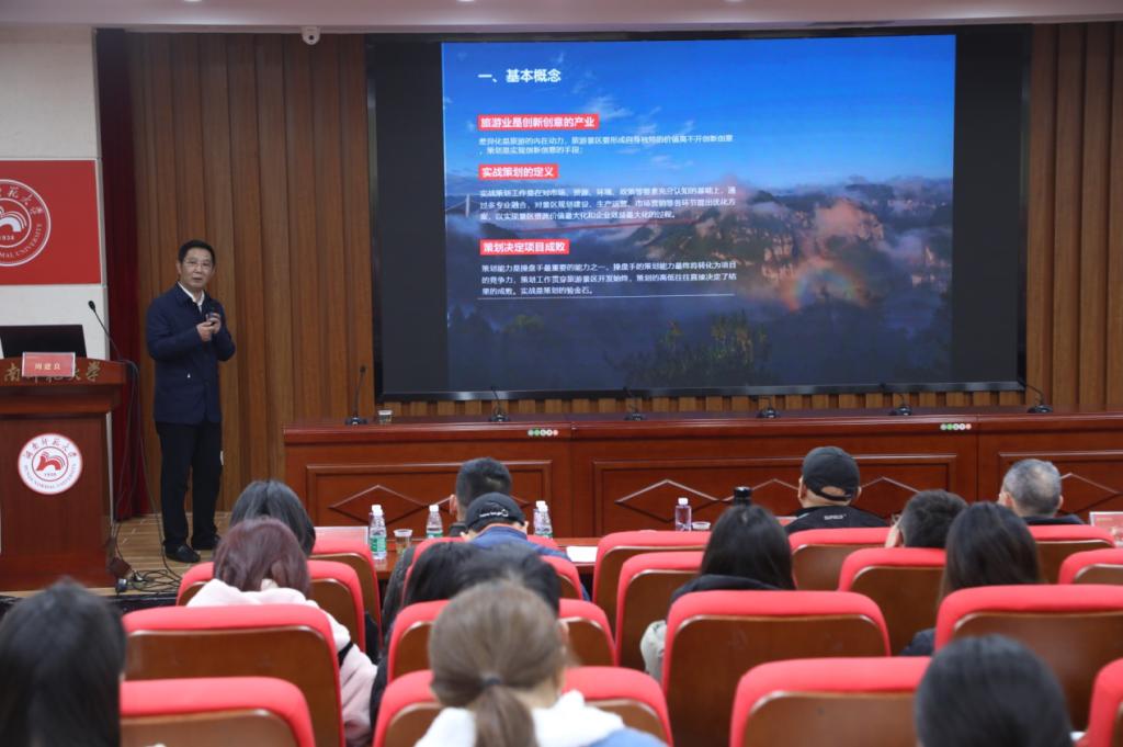据悉,本次文旅产业前沿讲座系列活动由公司旅游管理系牵头,旅游管理系主任罗文斌召集,得到了省文旅厅和业界的大力支持,旨在提升公司旅游管理一流专业建设,加强员工的专业认知和行业认知的重要举措。也是公司回应“不忘初心、牢记使命”主题教育中师生强烈希望加强产教融合的建议意见,由旅游管理系党支部开展的基于推动政产研学教融合的专项整改行动。