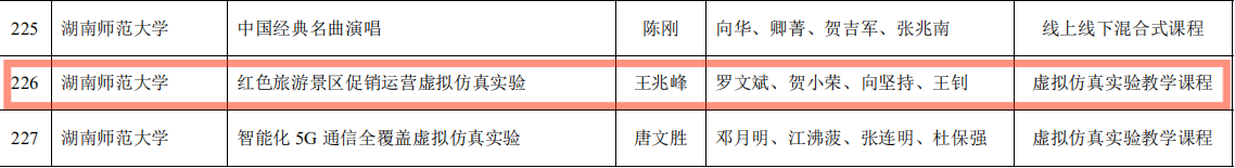 近日,省教育厅公布了2020年湖南省一流本科课程认定结果,公司4门课程全部被认定为省级一流本科课程。其中刘颖洁副教授“沟通的艺术”被认定为精品在线开放一流课程、汤静副教授“导游理论与实践” 被认定为社会实践一流课程、孟奕爽副教授“知识创业思维与方法”被认定为线上线下混合式一流课程、王兆峰经理“红色旅游景区促销运营虚拟仿真实验”被认定为虚拟仿真实验教学一流课程。