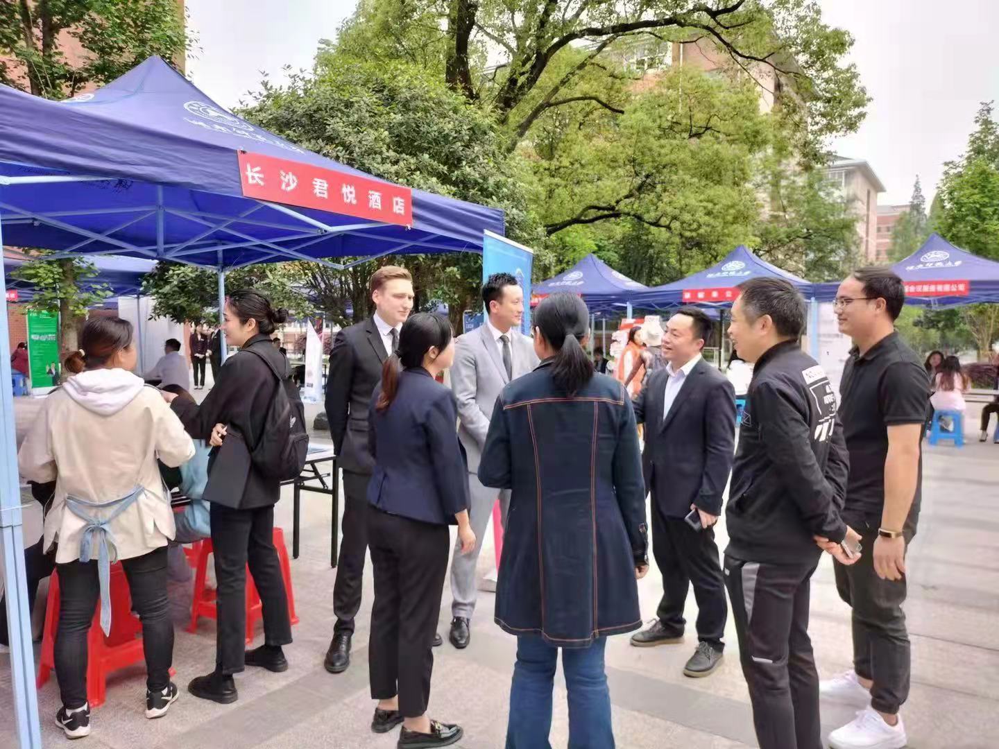 本次招聘会吸引了湖南中建物业服务有限公司、湖南宾馆、长沙尼依格罗酒店、长沙君悦酒店、长沙瑞吉酒店、湖南省世纪明德国际旅行社有限公司、猿辅导在线教育集团、学而思网校在线教育集团等32家用人单位入校招聘。一百多名前来应聘的同学主动了解意向单位的发展情况、用人标准以及薪资待遇,并向意向企业投递了简历。