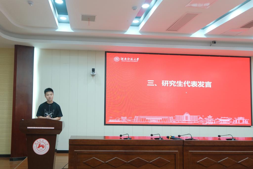 硕士毕业生李志远、本科毕业生翁金燕代表全体毕业生发言,表达了对母校不舍的依恋及真切的感恩之情,他们表示在新的人生征程中,将始终牢记自己是师大旅院学子,做一个心有大我、肩有大任、行有大得的新时代青年。