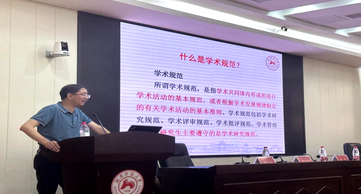 郑群明给全体新生开展了学术道德教育讲座,他深刻强调了学术规范的重要性,要求同学们时刻端正学习态度,做好学问,做真学问。