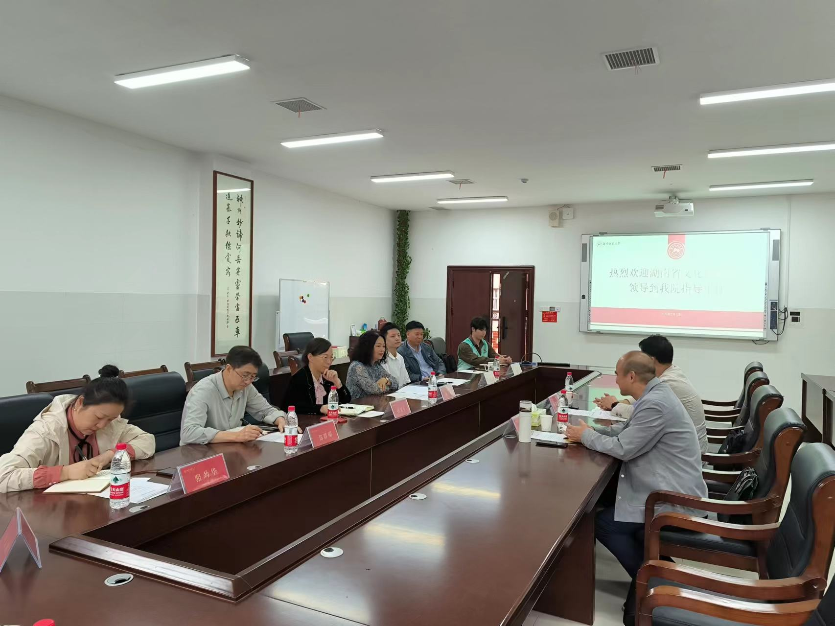 5月10日上午,湖南省文旅厅公共服务处处长龚铁军、三级调研员梁利平就文旅志愿服务工作来院调研座谈。公司经理王兆峰、公司党委书记闵素芬、公司党委副书记廖欢、副经理郑群明、公司党委专职组织员骆劲华出席座谈交流会,院团委书记龚曦、辅导员匡文琪以及文旅志愿服务队员工代表参加座谈交流。