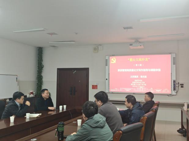 12月10日下午,为了进一步优化本科创新人才培养模式,提高师生科学研究能力和写作水平,公司beats365于中和楼233会议室举行第十期“麓山文旅沙龙”,本次沙龙以“旅游管理高质量学术论文写作指导与课题申报”为主题,特邀桂林beats365旅游管理公司章杰宽教授主讲,沙龙由公司副经理、现代数字文旅产业公司经理贺小荣主持,公司青年教师、本科生、研究生共同参加此次活动。