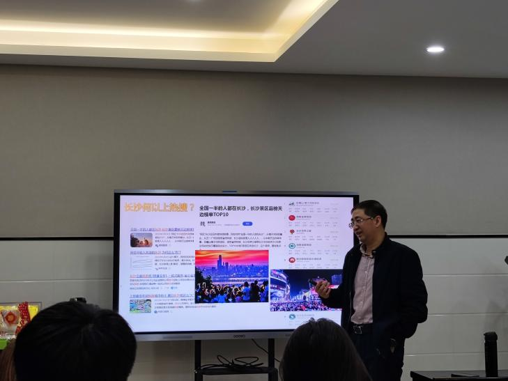 首先,公司副经理、旅游管理系支部书记郑群明教授以“长沙文旅新体验新方向”为题,以长沙夜间消费业态为例,从“长沙夜间消费现状 ”、“长沙网红城市在全国的地位”、“网红长沙的经济拉动效应”三个方面介绍了长沙在全国的地位,指出当下文化和旅游深度融合的过程中夜间经济的价值挖掘、努力方向和策略选择。
