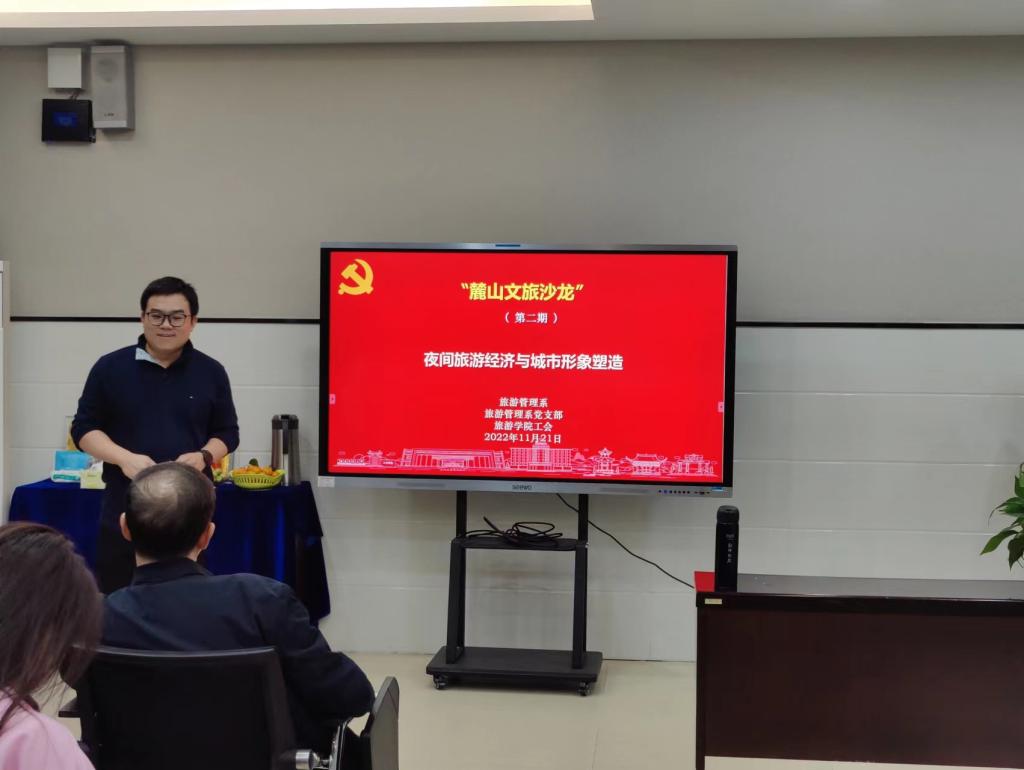 11月21日下午,公司在中和楼一楼工会活动室举行了第二期“麓山文旅沙龙”。该文旅沙龙继续由旅游管理系和旅游管理系党支部共同策划并组织,公司工会全力支持。本次沙龙主题为“夜间旅游经济与城市形象塑造”。公司副经理郑群明、公司副处级专职组织员骆劲华、工会主席汤静出席,沙龙由公司旅游管理系主任罗文斌主持。