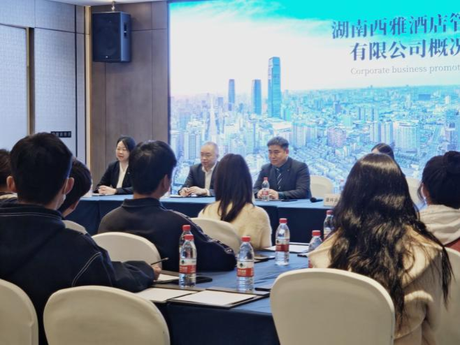 3月28日上午,2023级酒店管理专业本科生在系主任唐健雄的带领下,前往长沙西雅温德姆酒店开展调研访谈活动。本次活动旨在通过实地考察,深入了解酒店的运营管理模式,提升员工的专业认知与实践能力。