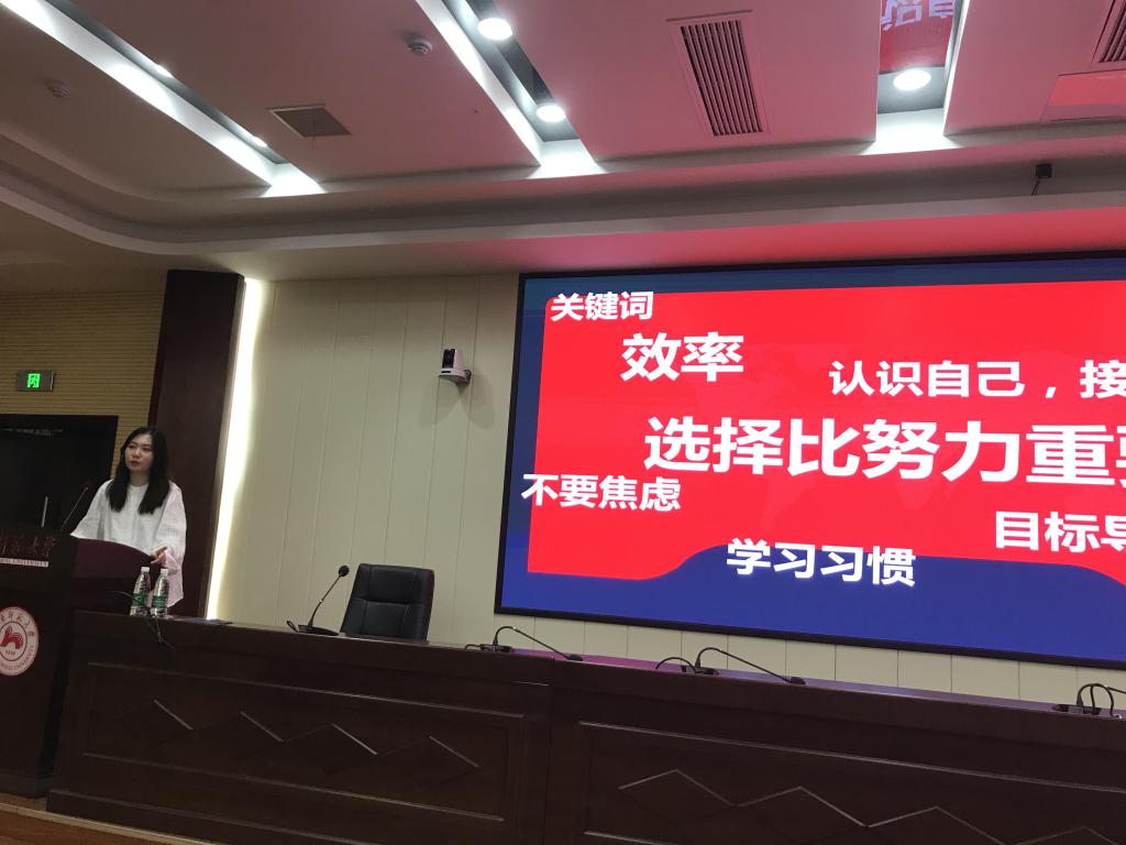 随后,由会展系17级员工李果、王娜、崔馨玲和曹婧祎分别从“公司和专业选择”“初试准备”“复试注意事项”以及“心态调整”等各个方面细致而又全面的分享了自己成功考研上岸的宝贵经验。