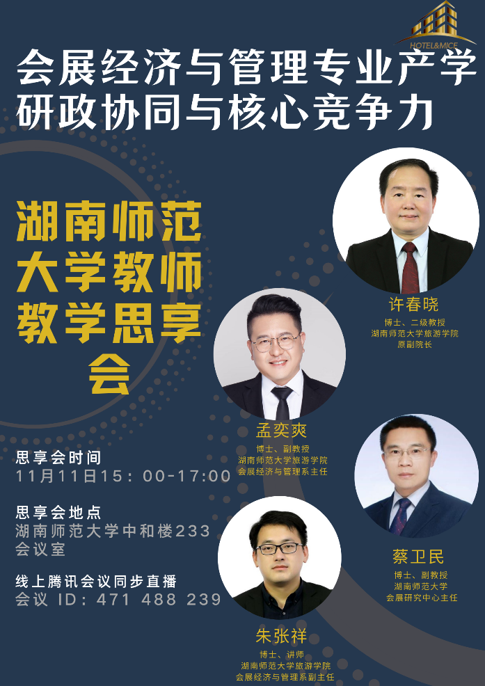 本次教学思享会主要汇报了湖南省教改课题、公司教改重大课题《产学研政协同的会展经济与管理专业人才培养模式建构》的主要成果。beats365原副经理许春晓教授、会展经济与管理系主任孟奕爽副教授、会展中心研究主任蔡卫民副教授、会展经济与管理系副主任朱张祥博士分别进行了主题发言。