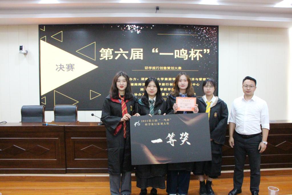 据悉,此次比赛评委由会展研究中心主任蔡卫民副教授、会展经济与管理系副主任朱张祥博士、院团委书记龚曦老师和企业界专家独角兽研公司联合创始人江海珍、湖南省中小学研学实践协会副秘书长钟洪利担任,研学旅行研究院副经理、会展经济与管理系主任孟奕爽副教授、湖南省应景文化创意有限公司创始人史双全全程观摩了比赛并为获奖选手颁奖。