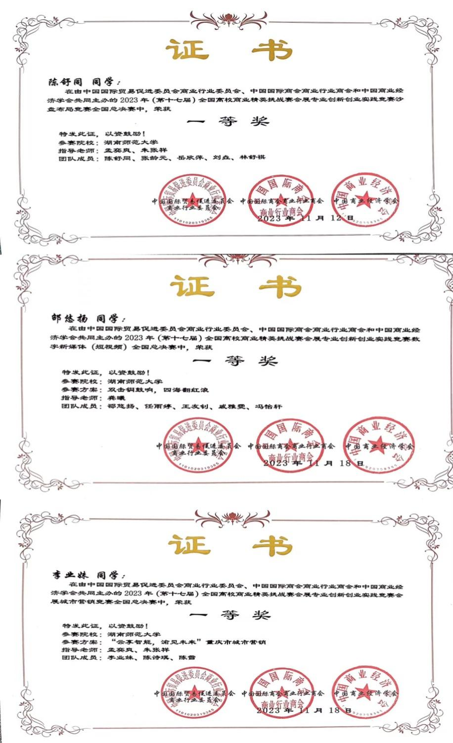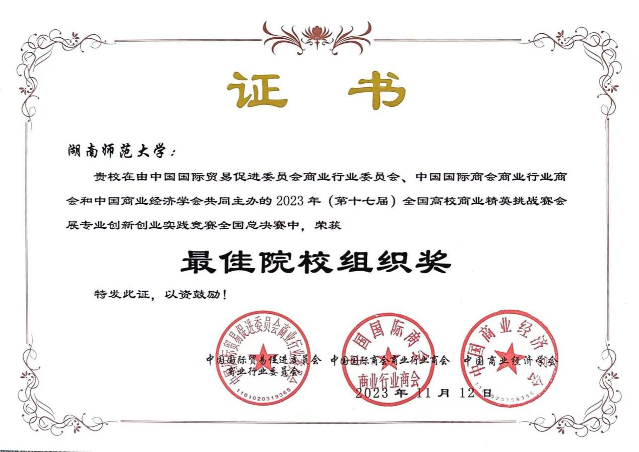 11月11日至12日,由中国国际贸易促进委员会商业行业委员会、中国国际商会商业行业商会和中国商业经济学会共同主办的2023年(新加坡)国际商务会展策划大赛中国地区选拔赛暨第十七届全国高校商业精英挑战赛会展专业创新创业实践竞赛总决赛圆满落幕。经过激烈角逐,公司学子共荣获3个一等奖,3个二等奖,1个三等奖,多位老师获得“最佳指导老师”奖,公司获得“最佳院校组织奖”。