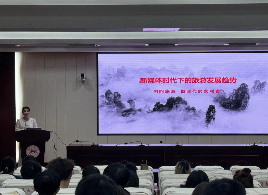 11月8日下午,公司在中和讲堂报告厅举办新文科建设系列讲座之“新媒体时代下的旅游发展趋势”的专题讲座。此次讲座邀请了湖南乐去旅行网络科技有限公司总经理黄霞女士担任主讲。旅游管理系主任罗文斌,2023级旅游管理专业全体同学参加。讲座由旅游管理系副主任汤静主持。