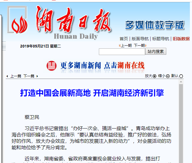 近年来,湖南省委、省政府高度重视会展业投入与发展,提出打造“中部会展高地”。全省涌现、引进了一大批知名产业会展项目,如互联网岳麓峰会、轨道交通产业博览会、食品餐饮产业博览会、中部农博会、装配式建筑产业博览会、建材产业博览会、智能制造产业博览会等,同时中非经贸博览会已永久落户湖南。2019年5月15日至18日,长沙国际工程机械展览会成功举办,这个世界级展会必将极大促进湖南工程机械行业创新升级、推动湖南产业经济高质量发展。