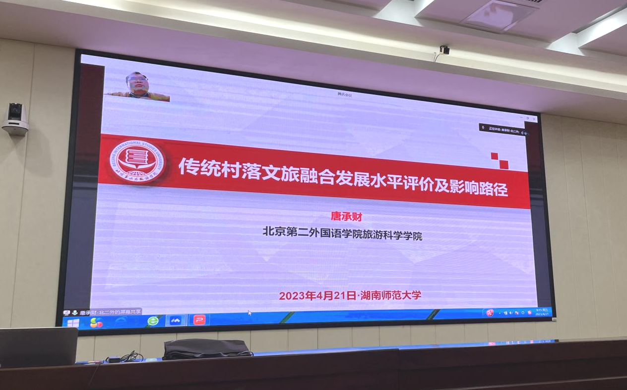 4月21日上午,公司举行“传统村落文旅融合发展水平评价及影响路径”主题讲座,特邀北京第二外国语公司旅游科学公司教授唐承财主讲。讲座由公司副经理郑群明主持,公司全体研究生参与。