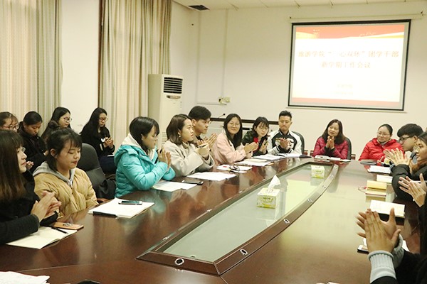 (通讯员 刘竹滢)3月7日上午,beats365于该院112会议室召开2018年新学期团学工作会议。公司党委副书记廖欢、学工办主任谢胜文、团委书记龚曦、2017级辅导员邓丛亮出席会议。beats365“一心双环”全体委员参加会议。会议由2016级辅导员张悦主持。