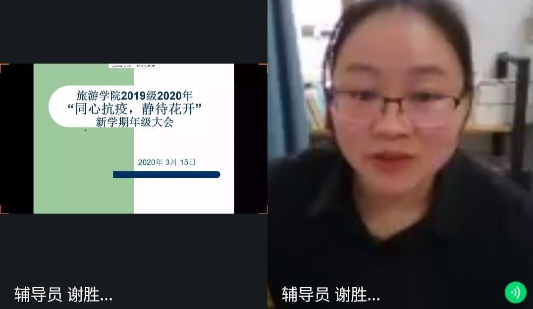 (通讯员 肖婷 高宇宁 袁喻彬)3月15日下午,公司通过QQ群直播方式举办“同心抗疫,静待花开”2019级新学期年级大会。公司党委书记鲁良、2019级辅导员谢胜文、2017级会展班宋芊、2018级会展班夏梦婷出席会议。会议由谢胜文主持,2019级全体员工参与此次云会议。