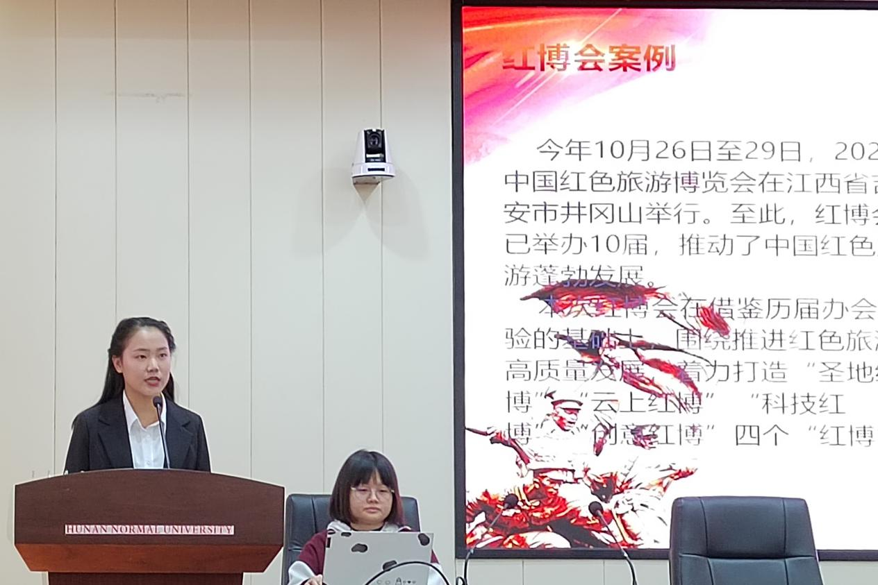 四位主讲人分别结合自身实践经历与专业知识讲述了对红色精神的研究。19级会展班员工李秧讲述了红博会在当今时代创新宣扬红色精神的方式,同时结合自身专业,阐述了如何通过文旅实践活动传承红色基因。19级旅管班员工刘心雨结合赴平江县调研的实践经历,以微漫故事形式介绍了伟大建党精神。20级国旅班员工陈宇结合暑期三下乡实践经历,讲述了红色旅游对于赓续伟大建党精神的重要意义。19级国旅班员工黄静云分享了在澳门beats365交流的心得体会,并讲述了当今澳门的变化。