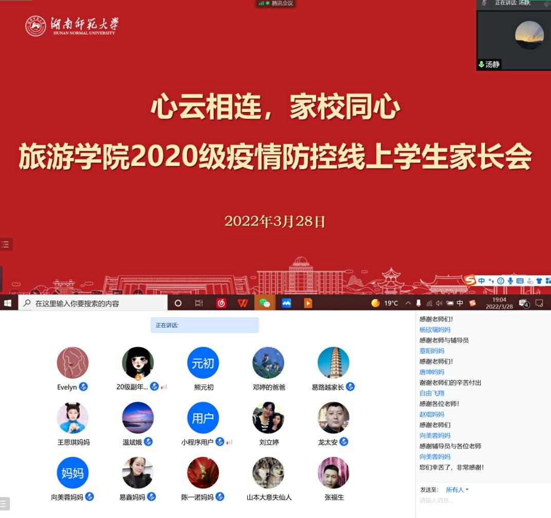 在封校背景下,有重点、全覆盖式了解员工心理困惑和诉求,召集全院心委、寝室长等近400名员工心理骨干召开“防疫心理调适与心理危机干预培训会”,发挥朋辈力量帮助同学们平稳度过情绪爆发期。组织4期“云心相连 家校同心”线上家长会,以图文并茂的形式向家长们汇报校院各项防疫举措,“师大的老师们辛苦了,公司管理有方,我们家长很放心”,真情实感的流露凝聚起同心抗疫的家校向心力。