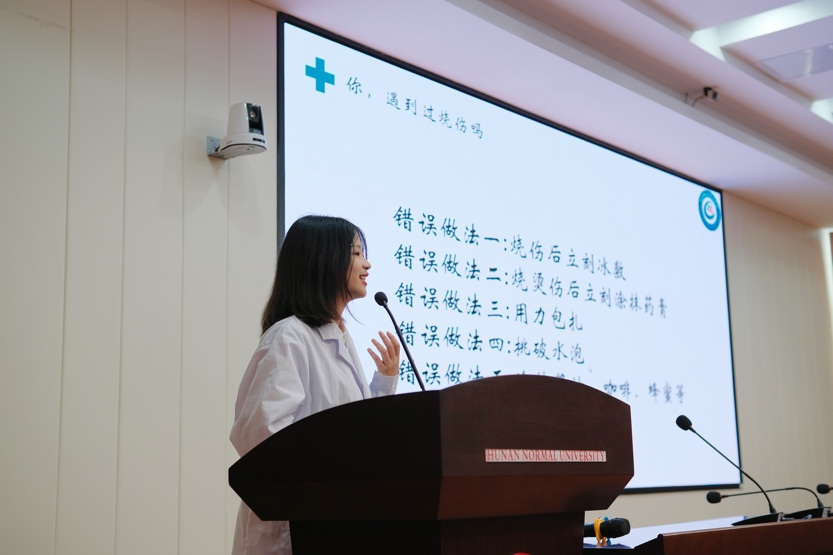 陈思婕讲解了烧伤烫伤与动物咬伤的处理方法,同时科普了室外活动的安全知识。