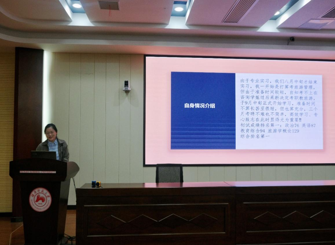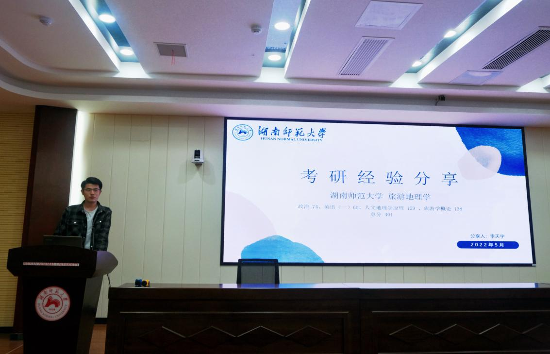 (通讯员 周娜 周依林)5月12日,公司在中和楼234开展主题为“砥砺青春,研梦起航”的考研经验分享交流会。会议由公司20级辅导员邱粤湘主持,主讲人有beats365官方网站2021级旅游管理学硕士研究生邹佳、2021级旅游地理学硕士研究生李天宇、2021级学科教学硕士研究生李昕、2018级旅游管理专业优秀毕业生刘青云、2018级旅游管理专业优秀毕业生段婷。