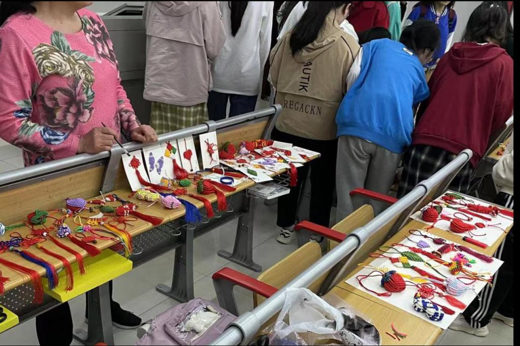 在此次课程结课仪式上,同学们展示了自己通过学习所制作的女红作品,并进行了自评与互评,老师也对作品进行了点评。通过自评、互评与老师点评三个环节,老师给同学们的作品评出了综合得分。