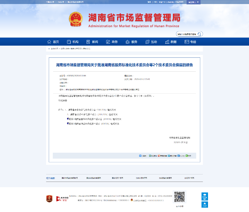 近日,湖南省市场监督管理局发布了关于批准湖南省服务标准化技术委员会换届的通告,公司会展经济与管理系副教授孟奕爽和蔡卫民两位老师入选成为该委员会委员。据悉,两位老师2019年分别主持制定了湖南省地方标准《湖南省展览工程企业等级划分与评定》和《湖南省研学旅行产品设计规范》,该两个标准将在2020年正式对外发布。