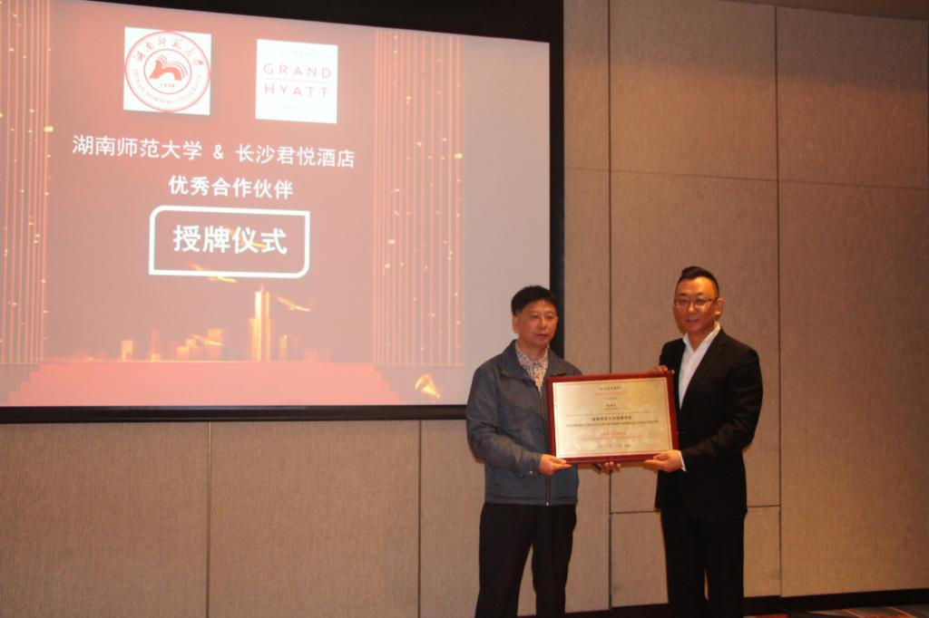 王兆峰代表所有在君悦酒店实习过的员工向君悦酒店致以诚挚的谢意,感谢君悦酒店为公司员工提供了实习平台和发展机会,并向酒店传达了持续合作的美好意愿。