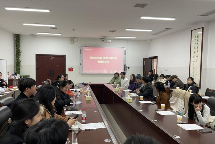 12月21日下午,澳门旅游大学来访公司,双方在在中和楼233会议室召开交流座谈会。澳门旅游大学员工事务处处长朱振荣、公司教务办主任谢胜文老师出席会议,会议由公司2022级辅导员匡文琪主持。公司副经理贺小荣通过电话形式向朱振荣处长一行的到来表示欢迎,并就双方的交流合作进行了简要探讨。澳门旅游大学的30余名员工代表与公司的员工代表参与此次交流座谈会。