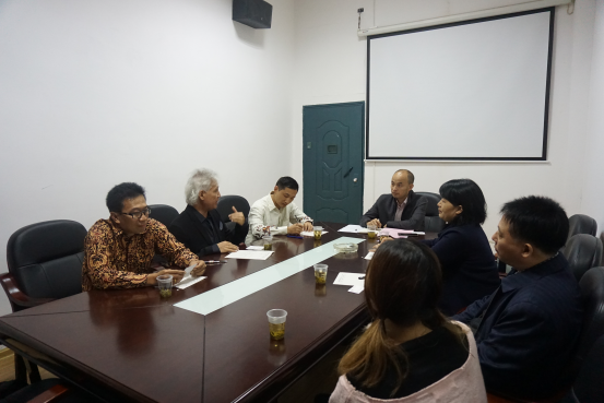 诺贺·苏甘达尼先生介绍了印尼Sahid集团的经营范围,以及开展国际化办学和对华交流合作的情况,就该集团跨国学习与实践项目进行了详细地推介,提出了与公司进行多种合作方式的可能性。诺贺·苏甘达尼指出:“今天的亚洲正在形成一个协作、奋进的共同体,亚洲国家应当团结一致,共同发展,谋求全亚洲的经济发展。”中国也正在全世界包括印尼开展大规模的投资和建设,我们应该抓住这个机会,推动华文教育和职业教育同步发展,培养出更多懂华文的技术、管理人才,为国家建设做出贡献。