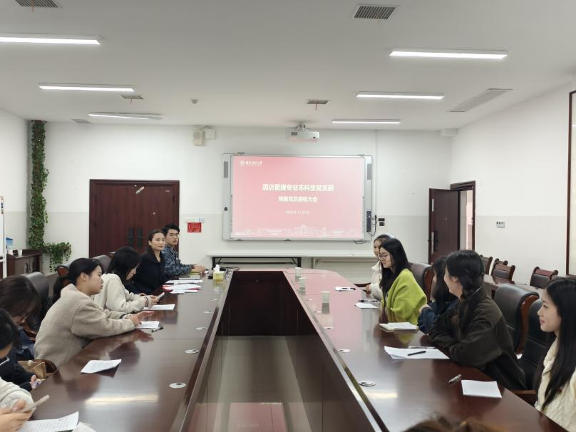 11月6日,酒店管理专业本科生党支部于中和楼233会议室召开党员基本培训第二课学习交流研讨会暨预备党员接收大会。会议由支部书记李天宇主持。