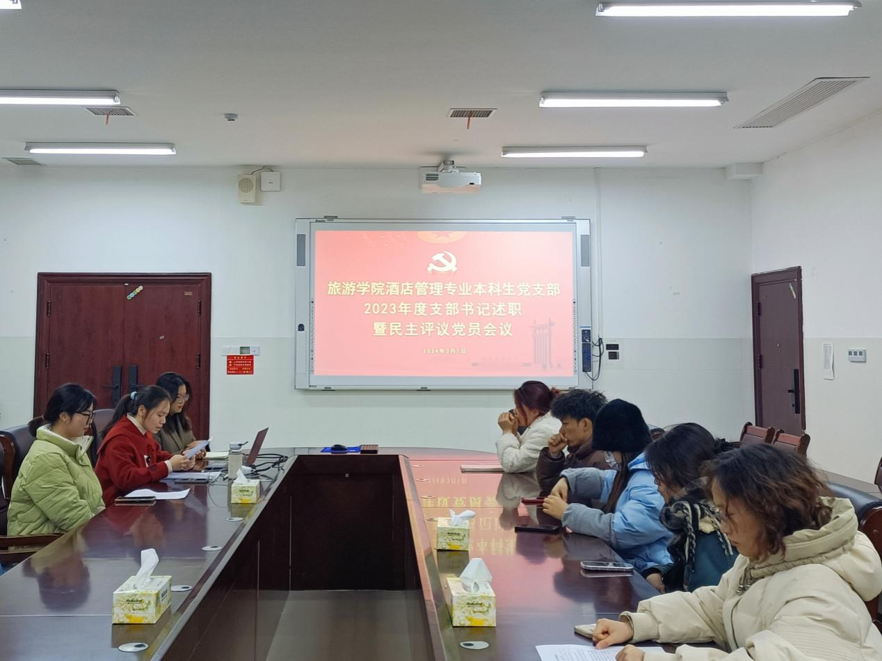 3月1日中午,公司酒店管理专业本科生党支部在中和楼233室召开2023年度支部书记述职和民主评议党员会议。此次会议分线上线下两个会场进行,全体党员参会,支部“第一书记”邱粤湘到会指导,会议由支部书记李蕾主持。