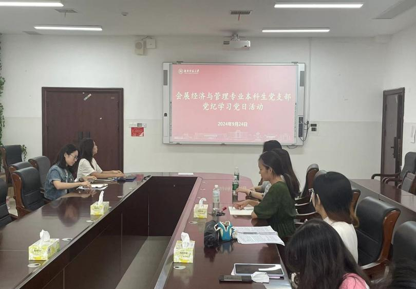 9月24日下午,会展经济与管理专业本科生党支部开展了党纪学习主题党日活动,活动由支部副书记范荩予主持。