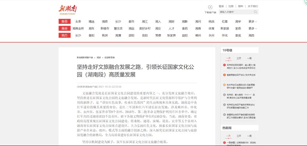 近日,新湖南网站刊登了公司王兆峰教授等人发表的文章《坚持走好文旅融合发展之路,引领长征国家文化公园(湖南段)高质量发展》,全文如下: