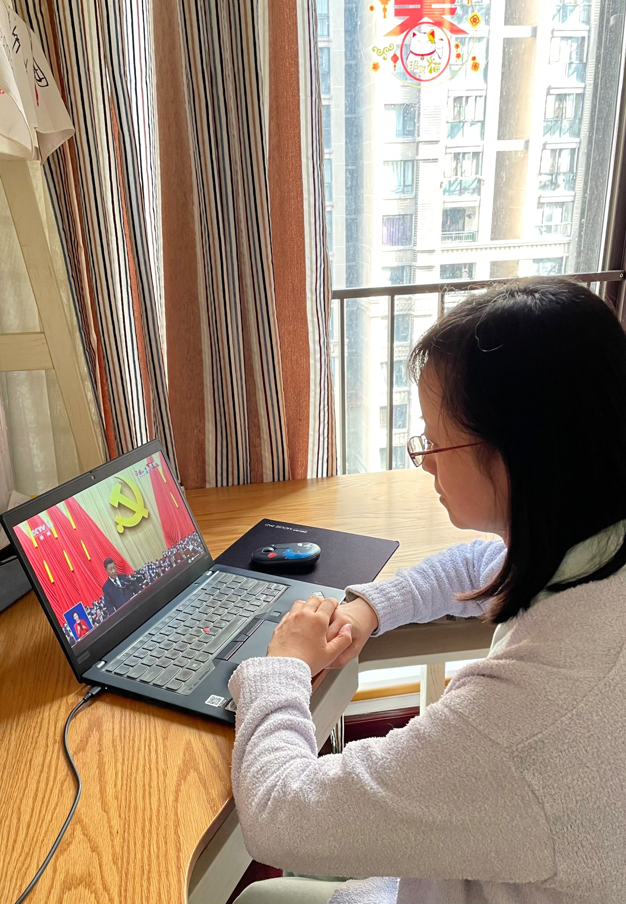 酒店管理系党支部全体党员通过多种形式观看党的二十大开幕盛况,支部书记唐健雄带领部分在校支部党员在中和楼233会议室集中观看,其余支部党员教师分别利用手机、电脑、电视等终端进行了收看。全体支部党员教师认真聆听习近平同志代表第十九届中央委员会向党的二十大作的报告。