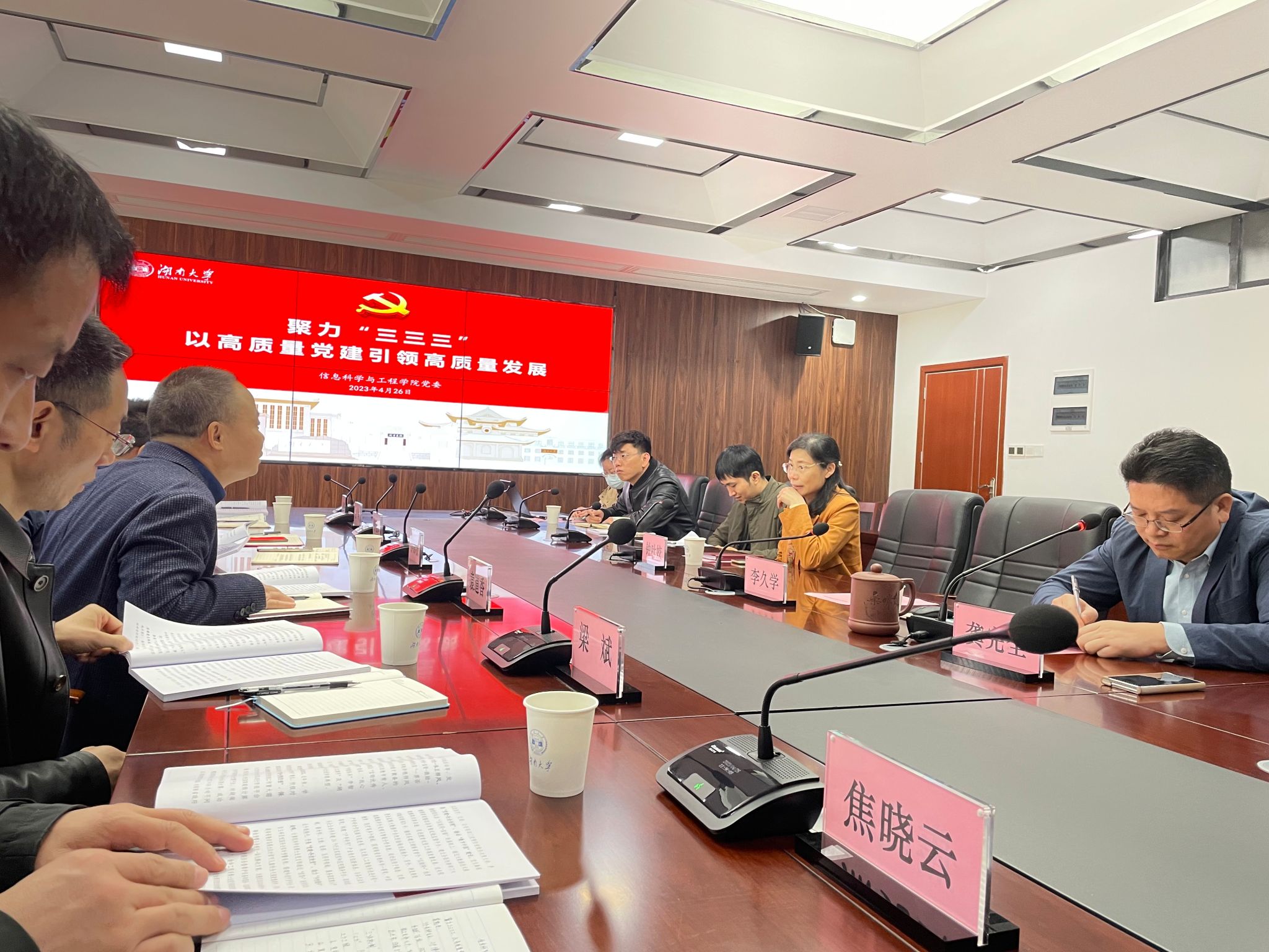 调研团先后走访了湖南大学的三个公司,其中重点调研两个全国党建工作标杆院系:化学化工公司党委、信息科学与工程公司党委;以及两个全国党建工作样板支部&全国高校“双带头人”教师党支部书记工作室:生物公司党委生物医学教师党支部、化学化工公司党委化学系第一党支部。重点了解了湖南大学“基层党建活力提示”计划项目中的基层党建品牌项目、党员教育特色项目等。