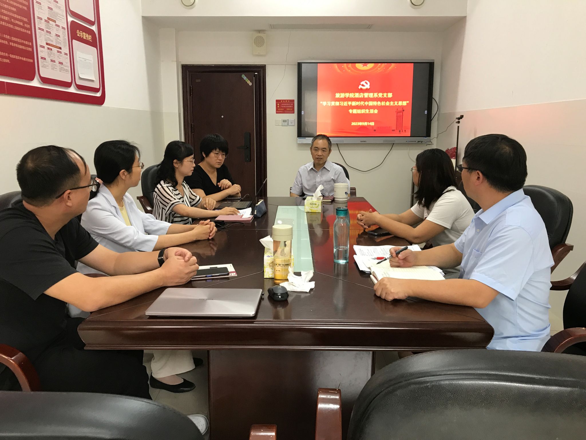 9月14日下午,酒店管理系党支部在中和楼235会议室召开“学习贯彻习近平新时代中国特色社会主义思想”专题组织生活会。会议由支部副书记程慧同志主持,支部全体在岗党员通过线上线下相结合的方式参加了会议,公司组织人事秘书邓丛亮出席会议。
