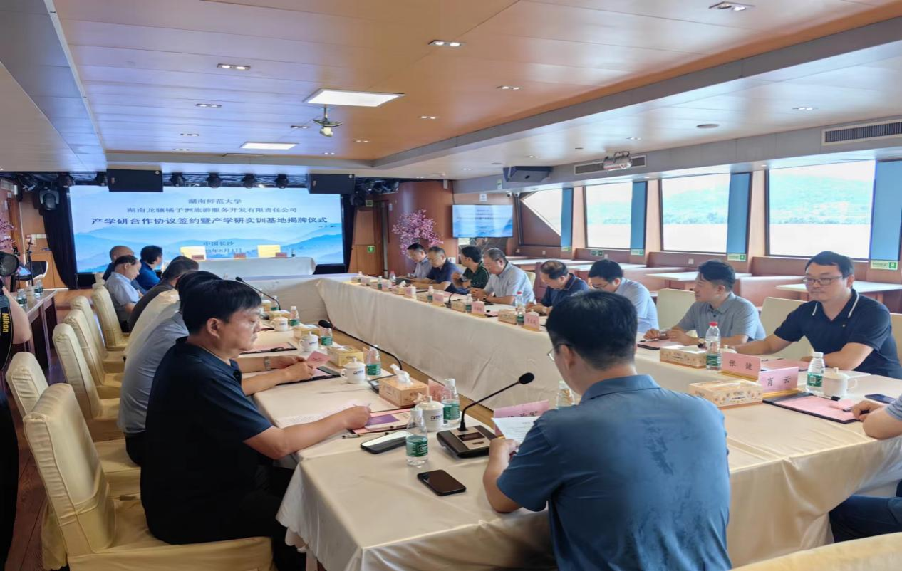 8月1日,公司与湖南龙骧旅游服务开发有限责任公司就产学研合作签约暨产学研实训基地揭牌仪式在橘子洲旅游码头举行,标志着双方正式建立合作关系。公司党委副书记周俊武,长沙市文化旅游广电局党组成员、副局长谭旭,长沙市岳麓山风景名胜区的管理局党委副书记、局长胡佳,湖南龙骧交通发展集团有限责任公司党委书记、董事长余伟军,湖南龙骧旅游服务开发有限责任公司党委书记、总经理黄树贵,公司副经理向智勇出席此次会议。